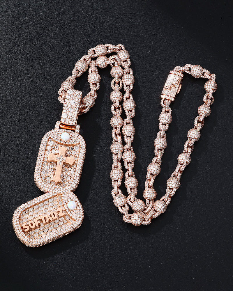 3 ROW MIDDLE BIG POINTER CUBAN NECKLACE (Passes The Diamond Tester)