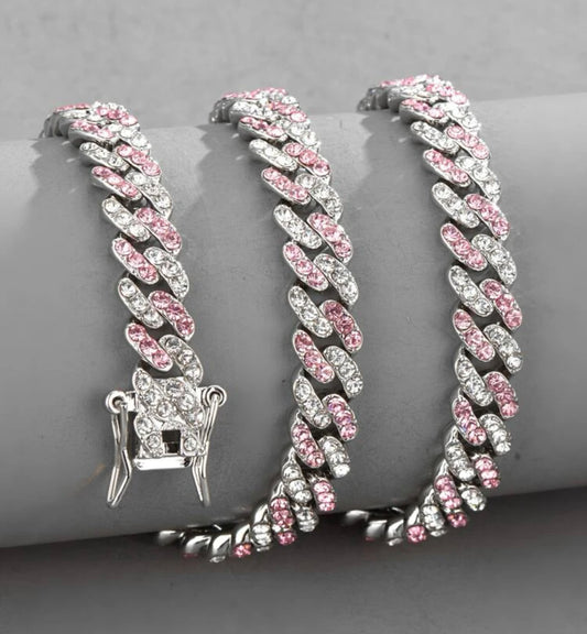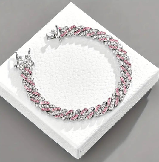 ICED 8MM ROSE AND WHITE GOLD CUBAN BRACELET (Cubic Zirconia)