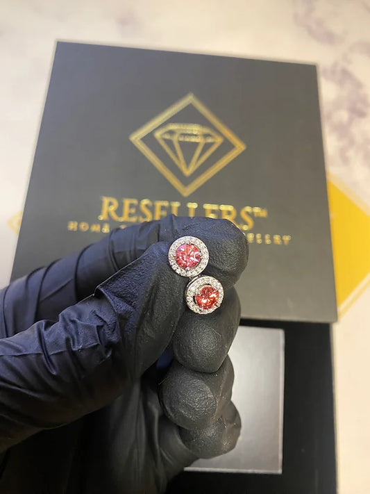 ROSE PINK HALO MOISSANITE EARRINGS (Passes Diamond Tester)
