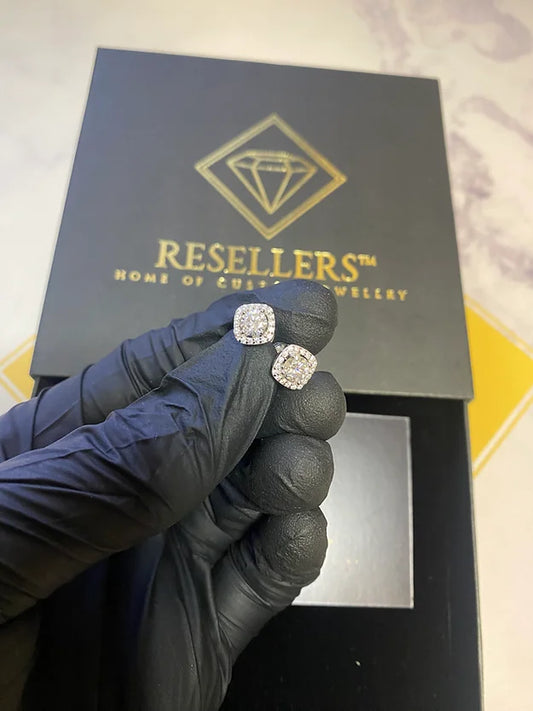 SQUARE WHITE HALO MOISSANITE DIAMOND EARRINGS (Passes Diamond Tester)