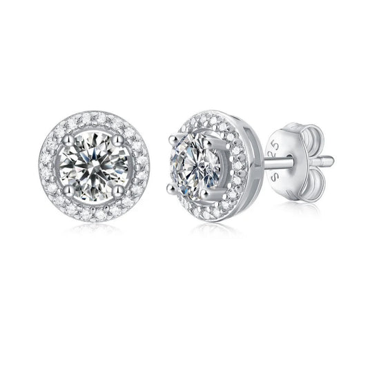 CIRCLE WHITE HALO MOISSANITE DIAMOND EARRINGS (Passes Diamond Tester)
