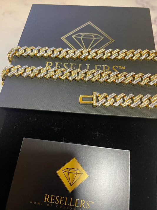 TWO TONE ICED MOISSANITE DIAMOND CUBAN NECKLACE (Passes Diamond Tester)