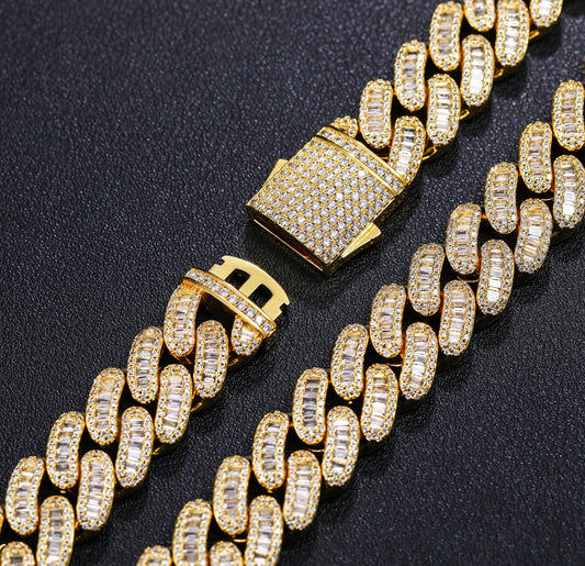 GOLD MIAMI BIGGER BAGUETTE NECKLACE(Passes Diamond Tester)