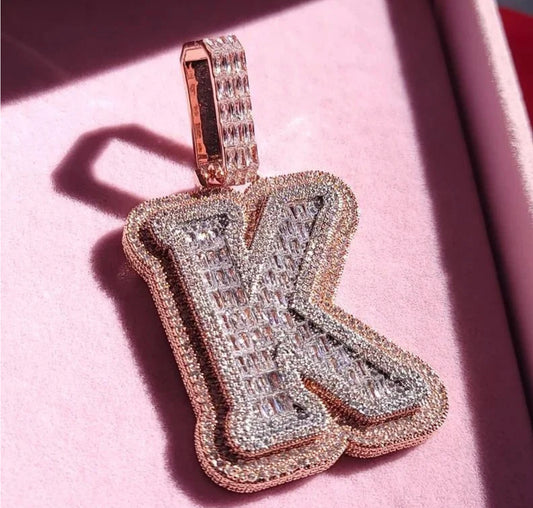 Flooded Baguette Two Tone Letter Pendant (Passes The Diamond Tester)