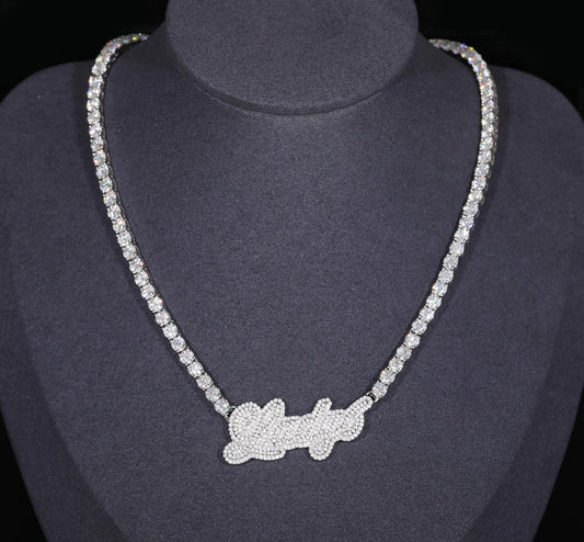 Custom Cursive Tennis Link Pendant (Passes Diamond Tester)