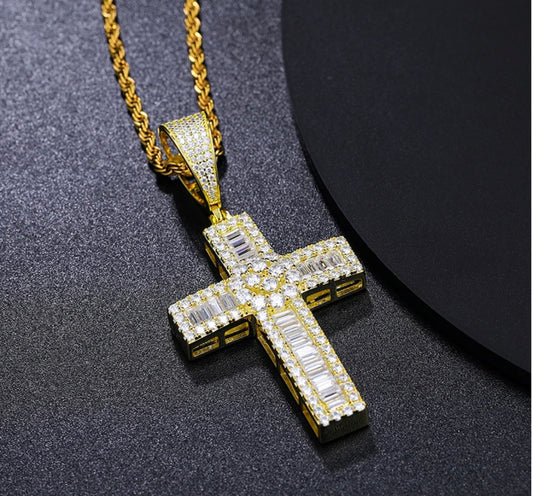 Iced Baguette Cross Pendant (Passes the Diamond tester)