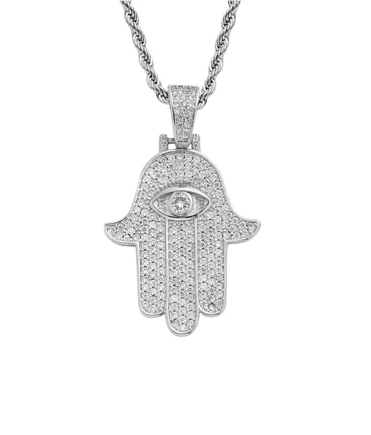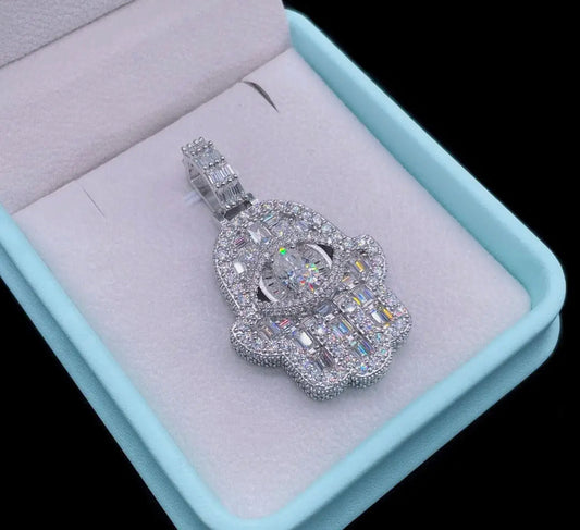 Iced Hamsa Pendant (Passes the Diamond tester)