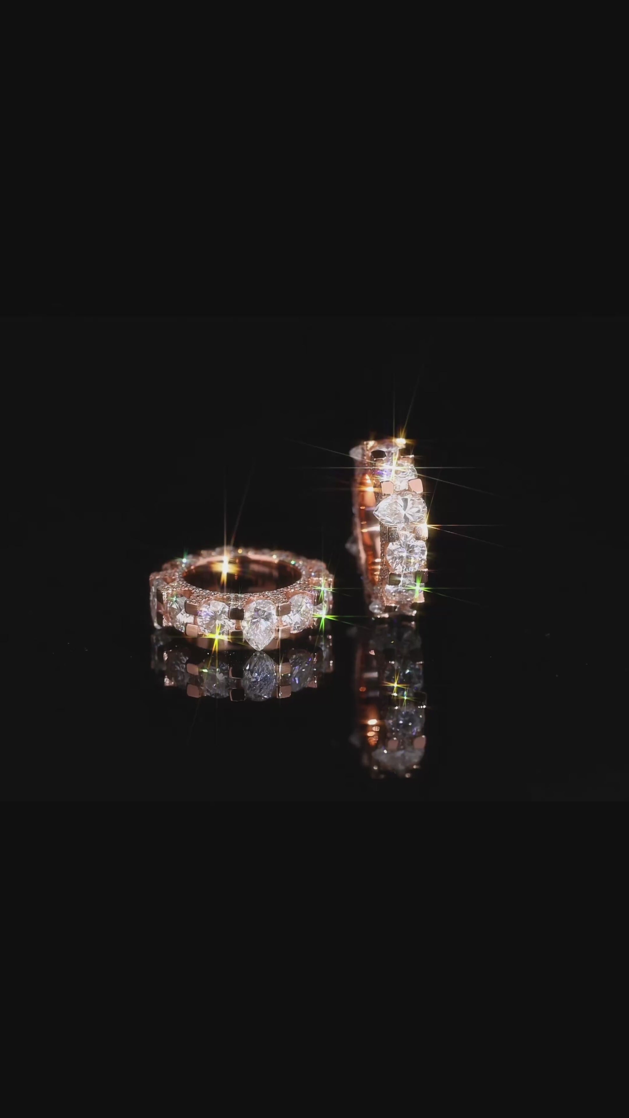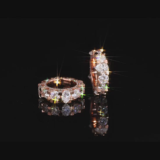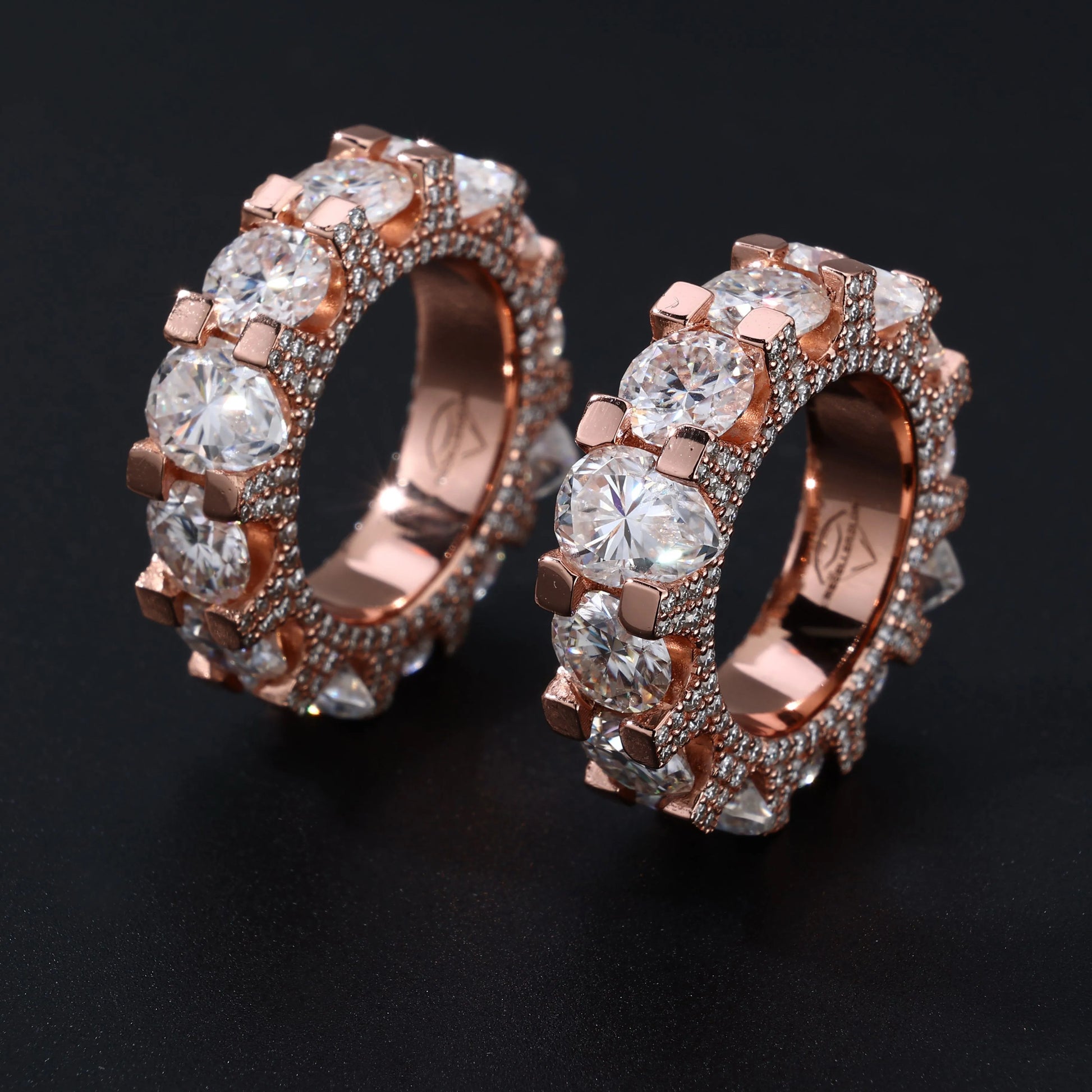 The Crown Ring is adorned with radiant 6mm stones. It’s a design featuring large round cuts and pear cuts. With additional side stones for extra brilliance, this ring is set with high-quality VVS Moissanite lab diamonds that pass standard diamond tests effortlessly, ensuring authenticity and exceptional value.